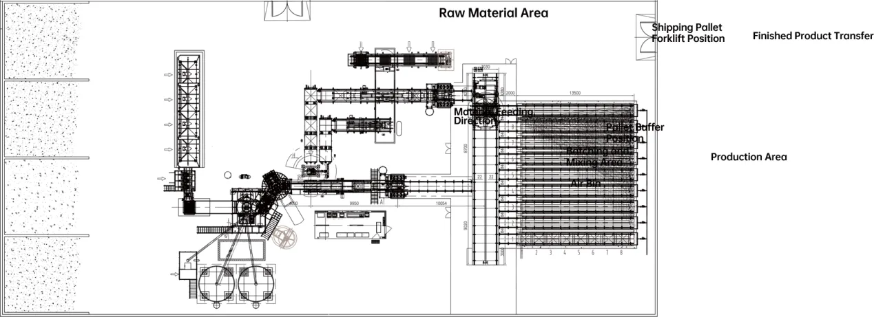 3. Projekt linii montażowej zapewnia kompleksowe rozwiązanie obejmujące drenaż i dopasowanie, automatyczne wyjmowanie z formy, transport i utwardzanie, pakowanie i gotowe produkty.