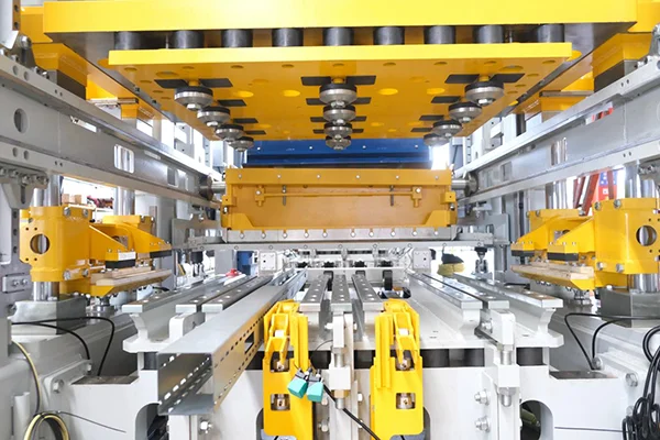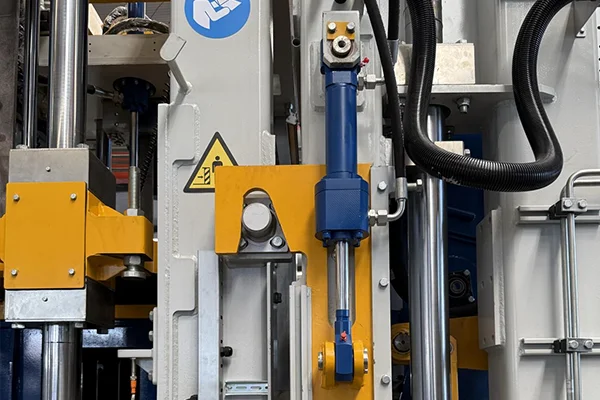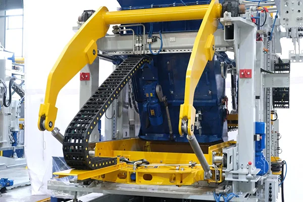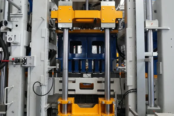 7Naciśnij urządzenie blokujące głowicę Ten mechaniczny mechanizm blokujący składa się z bloków blokujących o wysokiej wytrzymałości, głowicy prasy w kształcie klina i cylindrów hydraulicznych dwustronnego działania. Podczas rozformowywania cylindry napędzają bloki blokujące, aby promieniowo docisnąć głowicę prasy, tworząc mechaniczny zakleszczenie. Następnie formę uwalnia się pod stałym ciśnieniem, skutecznie eliminując elastyczne odbicie i mikroruchy, zapewniając ostre krawędzie cegieł, gładkie powierzchnie i znacznie lepszą jakość produktu.
