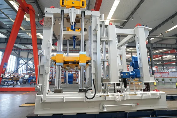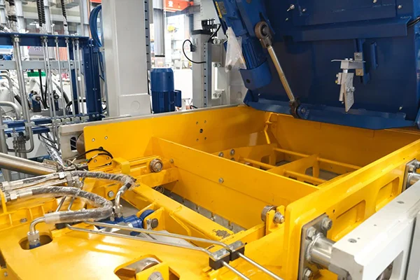 6Hydrauliczna funkcja automatycznego blokowania modułu mieszania czołowego Połączenie pomiędzy maszyną główną a zespołem mieszania czołowego ZN1200-2C jest realizowane poprzez zaawansowany hydrauliczny system automatycznego blokowania. Siłowniki hydrauliczne napędzają elementy blokujące, aby szczelnie przymocować jednostkę mieszania wierzchniego do maszyny głównej. Kiedy zachodzi potrzeba oddzielenia modułu mieszania wierzchu, system zwalnia blokadę, a motoreduktor napędza moduł mieszania wierzchu tak, aby poruszał się po szynach.